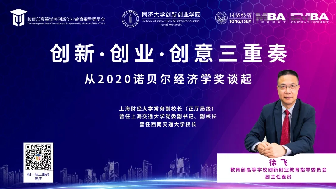 10月30日 19:00-20:00 创新创业教育供给侧改革:探索与实践——以同济大学为例